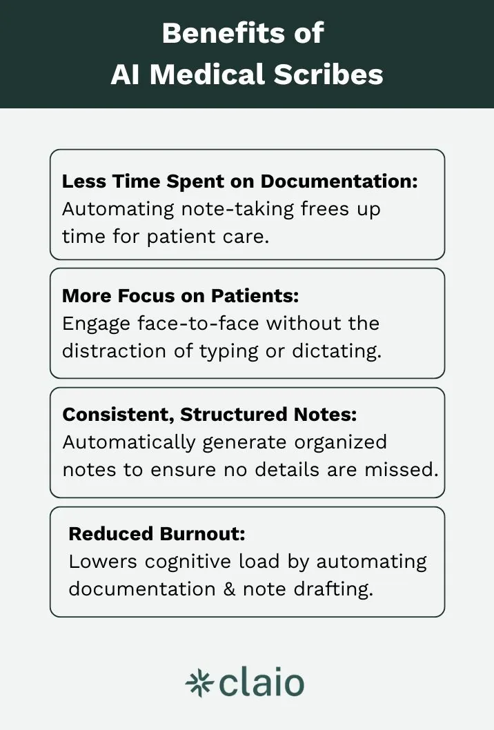 Taken together, these benefits explain why AI medical scribes are gaining traction in clinical settings.